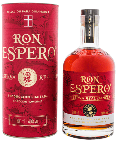Ron Espero – Reserva Real Danesa LimitedDenne Ron Espero – Reserva Real Danesa er en gammel, og helt specielle rom, er blended og aftappet af den anerkendte producent Albert Michler Distillery.Rommen er en kombination af destillater, der er udvalgt fra forskellige destillerier fra Barbados, Trinidad, Guyana og Den Dominikanske Republik.Duft: Dejlige delikate aromaer med et strejf af tropiske frugter.