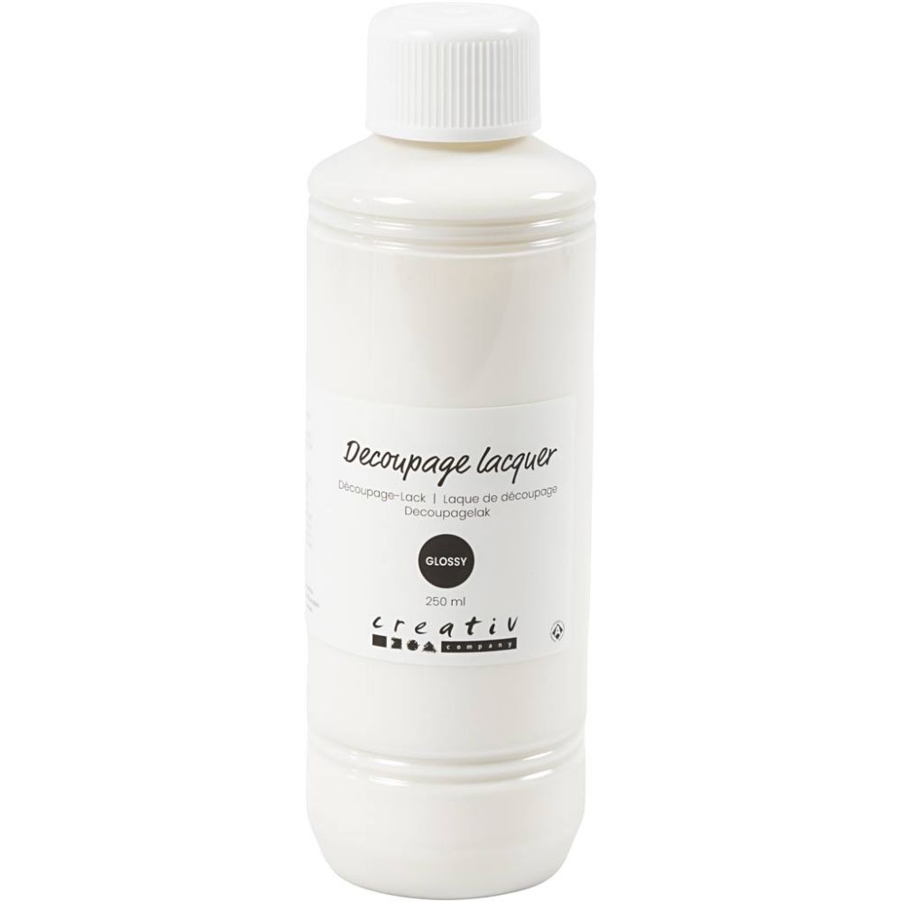 Tørrer vandfast op, Vandbaseret kvalitets Decoupage fra Schjerning. Kan benyttes til servietteknik, decoupage, glansbilleder, pap, gips,træ mm. Tørretid cirka 2 timer.