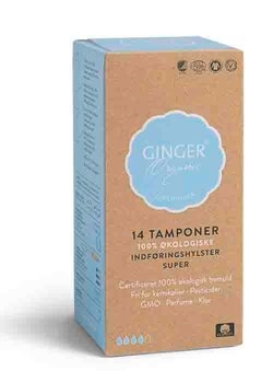 Ginger Organic Tamponger Med Införingshylsa Super 14st. Ginger Organic Tamponger är garanterade fria från pesticider, parfymer, klor, lim och kemikalier.