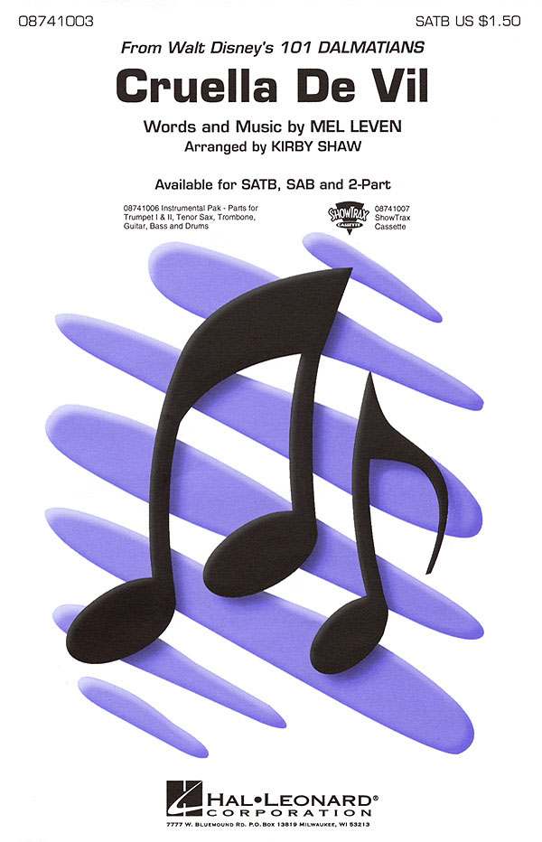 (from 101 Dalmations). This bluesy feature from Disney's animated hit movie 101 Dalmatians is just doggone fun to sing! Available: SATB, SAB, 2-Part, Instrumental Pak, ShowTrax Cassette. Performance Time: Approx. 2:50.