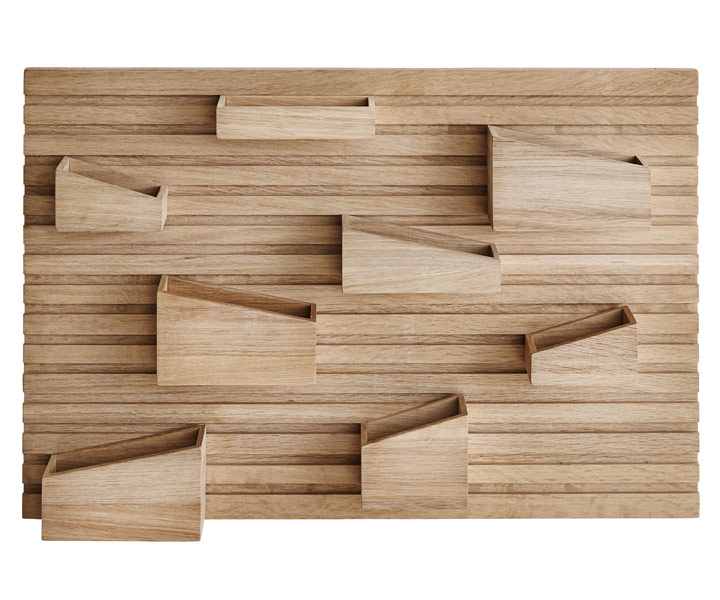 Design:Anne Holm & Sigrid SmetanaBeskrivelse:Input er den perfekte organizer til dine små hverdagsting, uanset om det er i gangen, på kontoret eller i soveværelset. Lav det udseende du ønsker og har brug for med de 8 aftagelige bokse. Input er udført i solid ubehandlet eg.Materiale:Eg