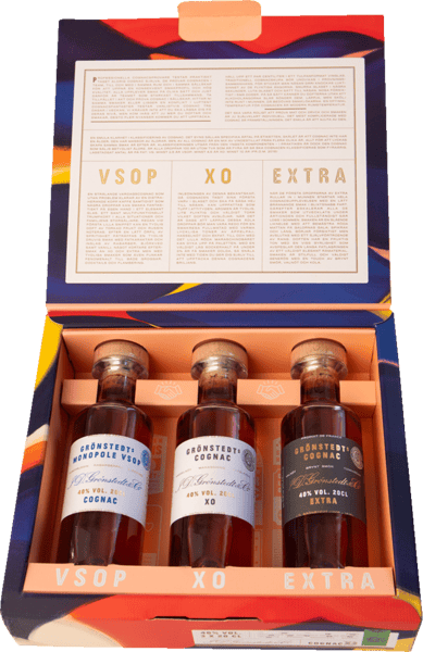 Triple Box fra Grönstedt er designet af det anerkendte hus Grönstedt's til at formidle viden om cognac på en underholdende og fængslende måde.