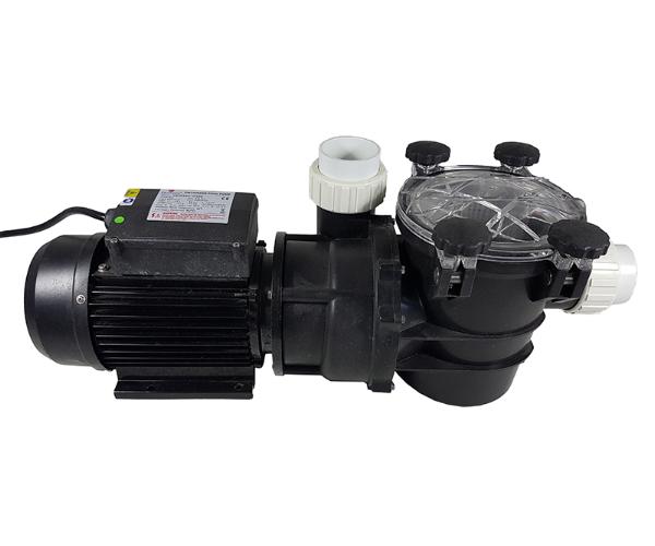 Kraftig 3 HK swimmingpool pumpe TP300. Støjsvag pumpe, nem at installere. Leveres med 2 pumpeunioner, der nemt kan limes på evt. PVC-slange eller rør. Med pumpeunionerne er det nemt at afmontere pumpen.