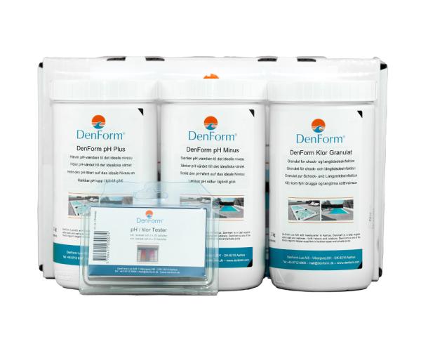 DenForms klor startpakke indeholder alt du skal bruge til at pleje din udespa