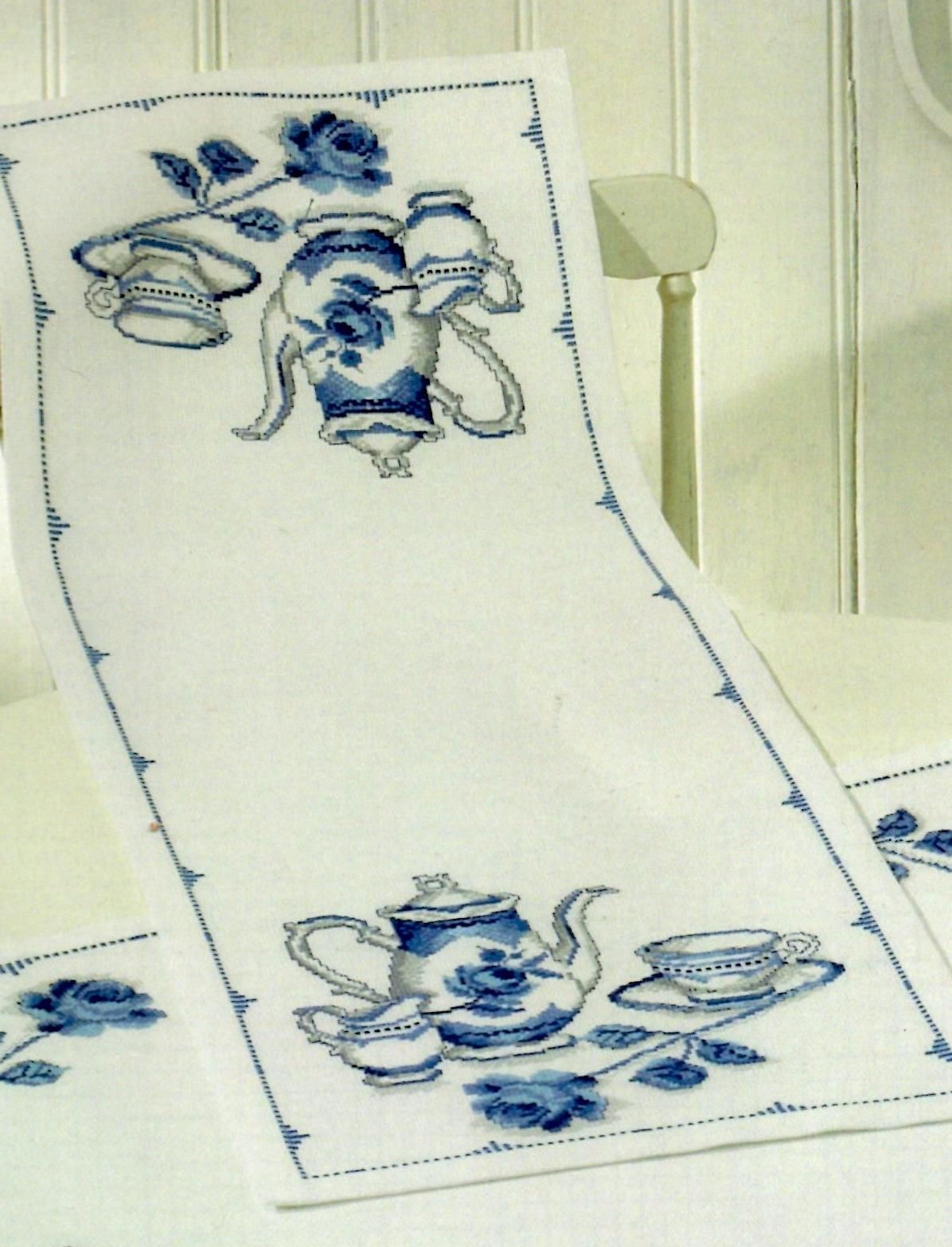 Broderi løber 34 x 100cm, stof 5,4 tern pr.cm.