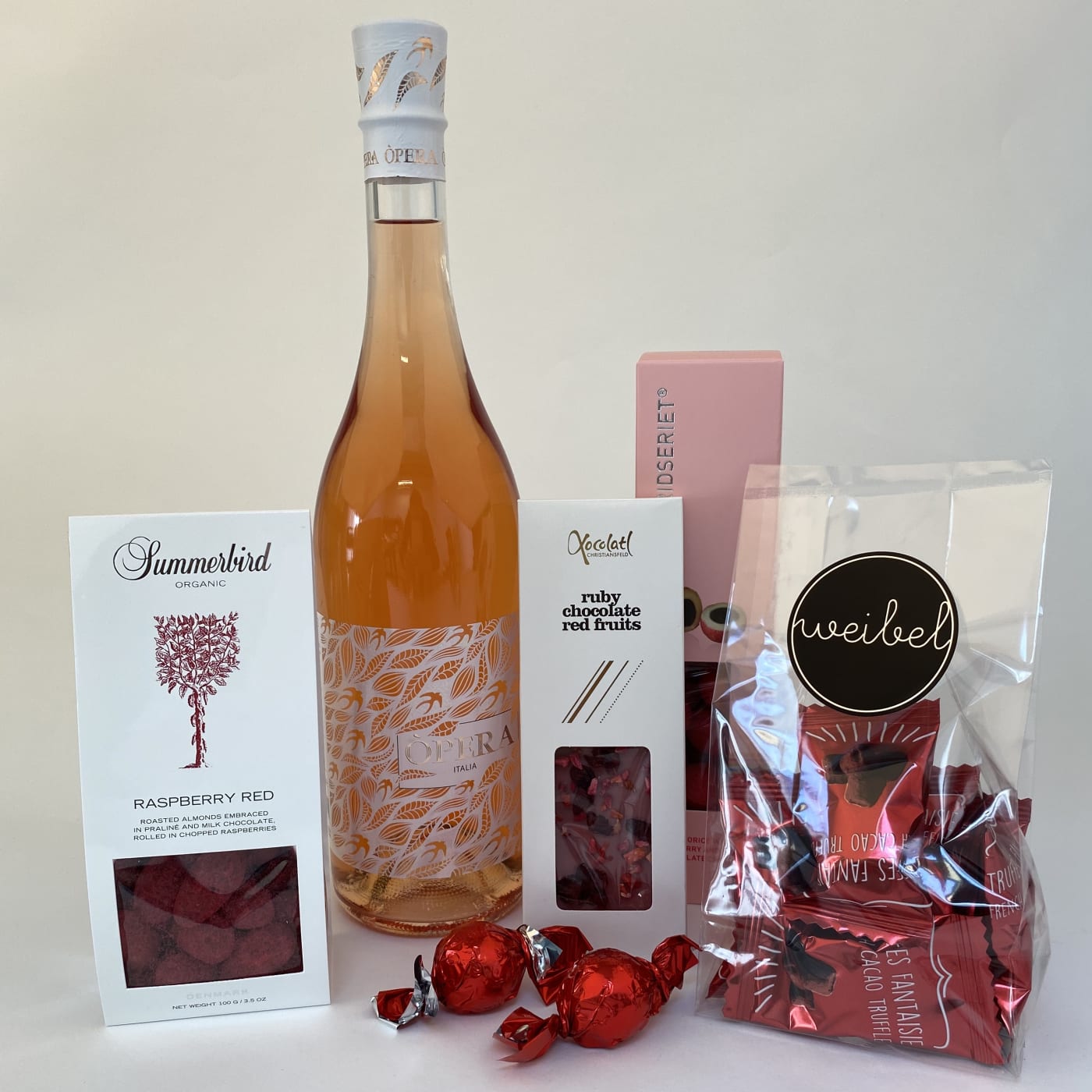 GaveKassen indeholder en flaske rose vin. Rosen er frisk og frugtrig- perfekt som hygge på en sommerdag. I kassen er der også søde lækkerier. Kassen indeholder: - 1 Flaske Opera Rose - 1 bøtte vingummi fra Wally and Whiz - 1 lakrids fra Lakridseriet - 1 Truffles fra Weibel - 1 pose mandler fra Summerbird - 2 chokolade kugler Gaven sendes i fin forsendelsesgaveæske, så det ser pænt og lækkert ud, når den modtages. Indholdet kan varierer, men min. værdien er den samme