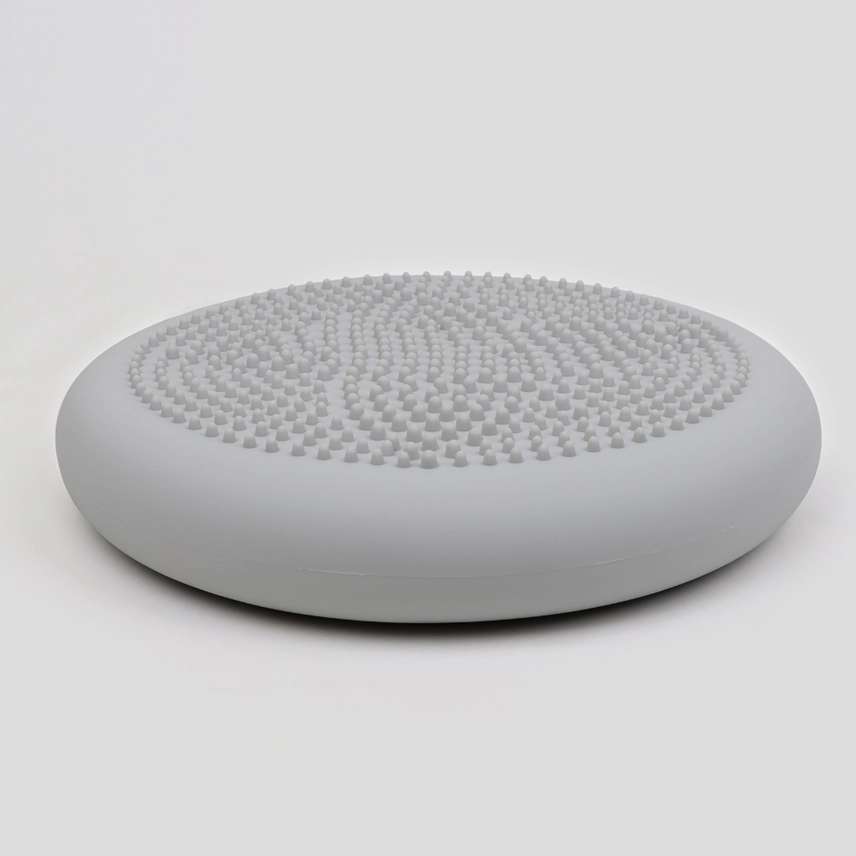 Denne siddepude er et alsidigt tilbehør designet til længere siddende perioder: en vippende og gyngende pude, der giver en beroligende, terapeutisk oplevelse, samtidig med at den fungerer som et redskab, der træner din styrken i din core. Uanset om du sidder ved dit skrivebord, ser tv eller blot slapper af, giver denne pude mulighed for at bevæge sig, hvilket kan lette ubehag i lænden og fremme en bedre kropsholdning. Den kan også være god for dem, der har brug for at være i bevægelse for at kunne fokusere og koncentrere sig. Den ene side af puden har to teksturerede overflader. Den ene med mange små knopper, der giver et intenst sanseinput, og en side med bløde runde knopper, der giver et blidt, taktilt input. En af fordelene ved denne pude er, at dens fasthed der kan tilpasses, hvilket giver mulighed for, at man kan tilpasse den til det foretrukne stabilitetsniveau. Med en medfølgende håndpumpe kan du nemt justere fastheden, så den passer til dine behov, uanset om du foretrækker en blødere eller mere fast følelse. Jo mere fast puden er, jo mindre kan den bevæge sig. Mål:-33 cm i diameter-6,5 cm høj