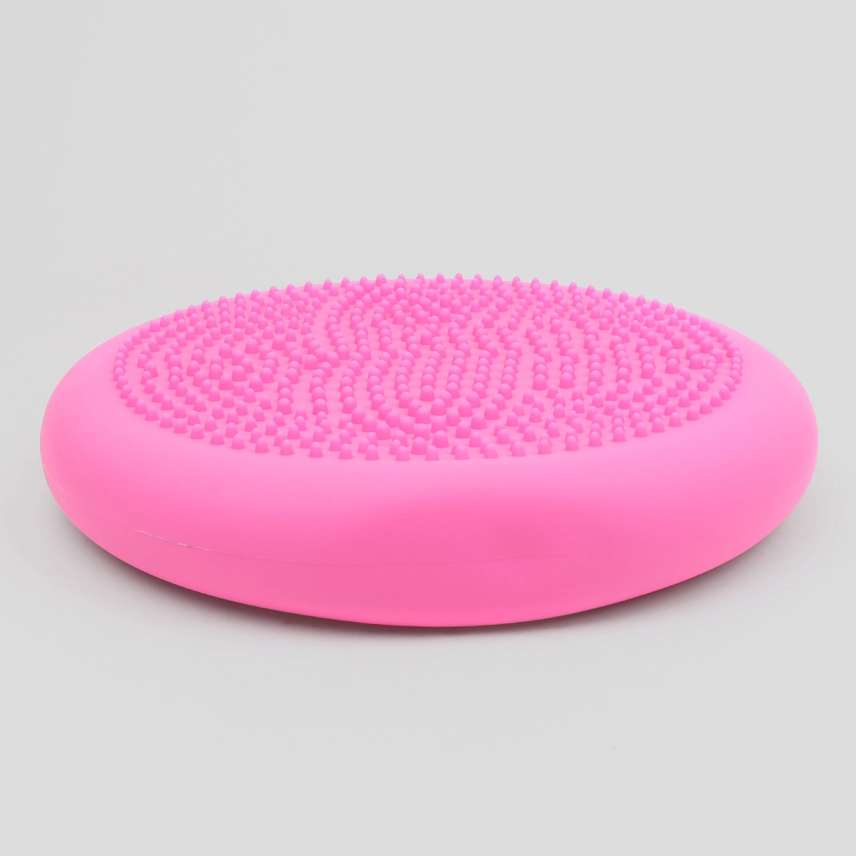 Denne siddepude er et alsidigt tilbehør designet til længere siddende perioder: en vippende og gyngende pude, der giver en beroligende, terapeutisk oplevelse, samtidig med at den fungerer som et redskab, der træner din styrken i din core. Uanset om du sidder ved dit skrivebord, ser tv eller blot slapper af, giver denne pude mulighed for at bevæge sig, hvilket kan lette ubehag i lænden og fremme en bedre kropsholdning. Den kan også være god for dem, der har brug for at være i bevægelse for at kunne fokusere og koncentrere sig. Den ene side af puden har to teksturerede overflader. Den ene med mange små knopper, der giver et intenst sanseinput, og en side med bløde runde knopper, der giver et blidt, taktilt input. En af fordelene ved denne pude er, at dens fasthed der kan tilpasses, hvilket giver mulighed for, at man kan tilpasse den til det foretrukne stabilitetsniveau. Med en medfølgende håndpumpe kan du nemt justere fastheden, så den passer til dine behov, uanset om du foretrækker en blødere eller mere fast følelse. Jo mere fast puden er, jo mindre kan den bevæge sig. Mål:-33 cm i diameter-6,5 cm høj