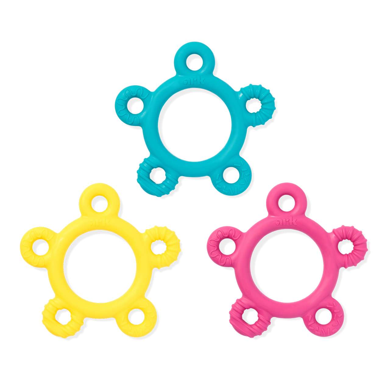 Mød den sødeste bidemakker på markedet! ARK’s Donut Baby Chew Ring er skabt til babyer og småbørn, der lige er begyndt at udforske verden med munden. Med hele fem forskellige teksturer – inspireret af lækker donut-topping – tilbyder ringen en skøn variation af sansestimuli, samtidig med at den lindrer ømme gummer og styrker de første bid og tyg. Hver "donutbid" byder på nye oplevelser:– Glat overflade– Lodret, vandret og snoet "glasur"– Knasende "drys" Den ideelle kombination af sjov, tryghed og mundmotorisk udvikling! Produktinfo: Mål: ca. 11,5 cm i diameter og 1 cm tyk Fremstillet af medicinsk elastomer Fås i 2 fastheder: Blød: Meget fleksibel og skånsom – ideel ved begyndende tandsætning Fast: Stadig tyggevenlig, men med mere modstand – god til træning af kæbemuskulatur Kan håndvaskes eller tåle opvaskemaskinens øverste hylde (uden tørreprogram) Fremstillet i Columbia, South Carolina, USA CE-mærket og fri for BPA, PVC, latex og ftalater Velegnet fra 0 måneder og op – altid under opsyn Sælges enkeltvis Hvorfor vælge ARK Donut Ring? Fantastisk til babyer, der begynder at tygge og udforske med munden Varierede teksturer giver både taktil stimulering og træning Et trygt og holdbart alternativ til hænder, tøj eller legetøj i munden Passer perfekt til hjemmebrug, vuggestue eller som støtte i tidlig mundmotorisk træning OBS: Dette er ikke legetøj. Bruges altid under opsyn af en voksen. Undersøg produktet før og efter brug, og udskift ved tegn på slid. 👉 Se også vores guide til at vælge det rette bideredskab til baby her