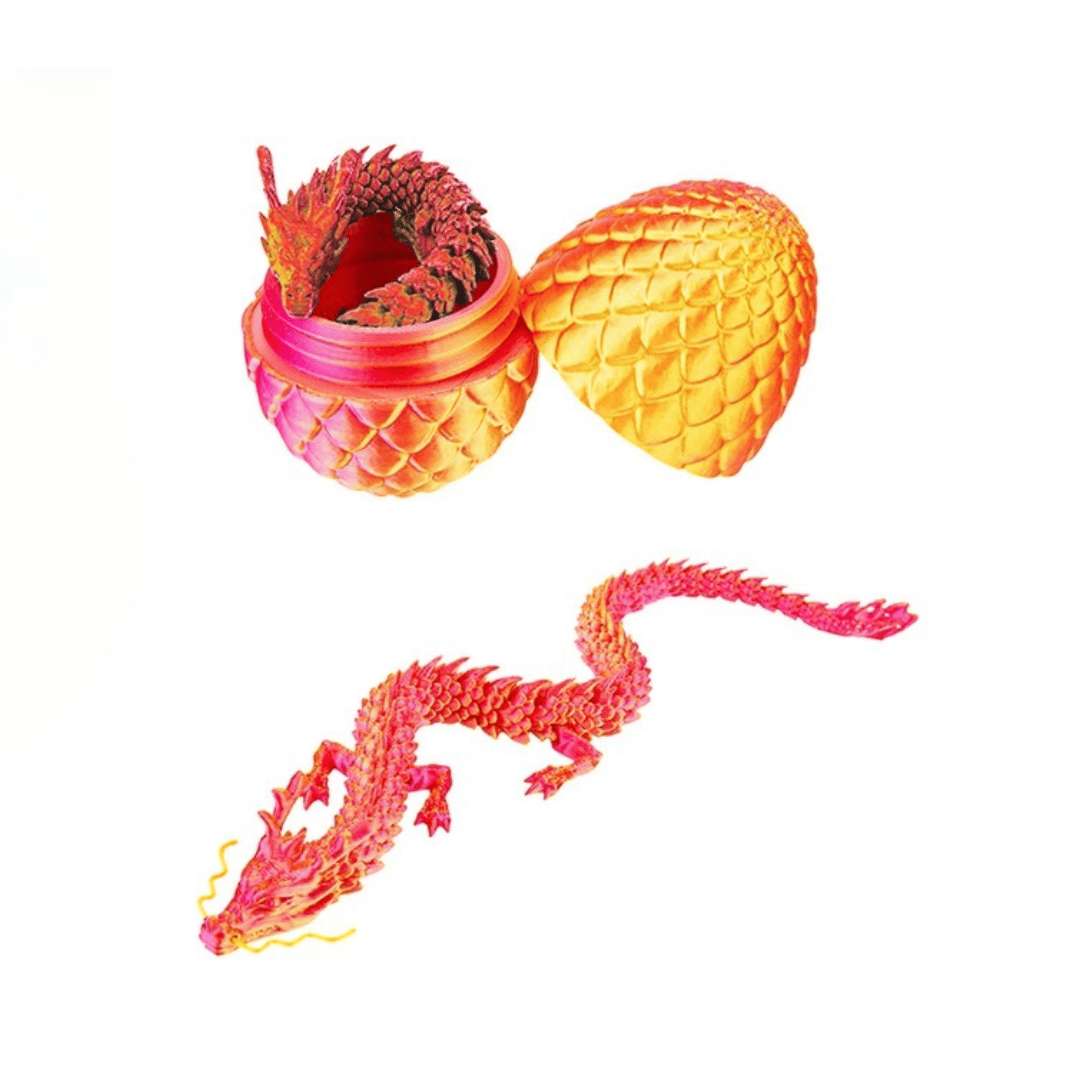 Et æg. En drage. En magisk overraskelse i 3D. Denne unikke fidget er formet som et æg – men indeni gemmer der sig en detaljeret, 3D-printet drage med bevægelige dele. Ægget åbnes, og frem kommer en drage, der er overraskende livagtig i både bevægelse og udseende. De fine led og den fleksible konstruktion gør den oplagt som sansestimulerende fidget for både børn, teens og voksne med interesse for fantasy og drageuniverser. Dragen er både flot og fascinerende at røre ved – og den bevæger sig så realistisk, at den hurtigt bliver en, man tager frem igen og igen, når man har brug for ro i hænder og hoved. En oplagt gaveidé til den dragelystne eller til skrivebordet som sansestimulerende nips, der også indbyder til leg. 🛡️ Fakta: Mål på æg: ca. 11 x 11 x 15 cm 3D-printet med flotte detaljer Dragen har bevægelige led og ligger i et åbentbart æg Velegnet som fidget og dekorativ figur Anbefales fra ca. 6 år og op OBS! Pga. variationer i filamentet kan der være mindre variationer i farverne på dragerne. Særligt regnbuevarianten, da der er brugt en gradient filament.
