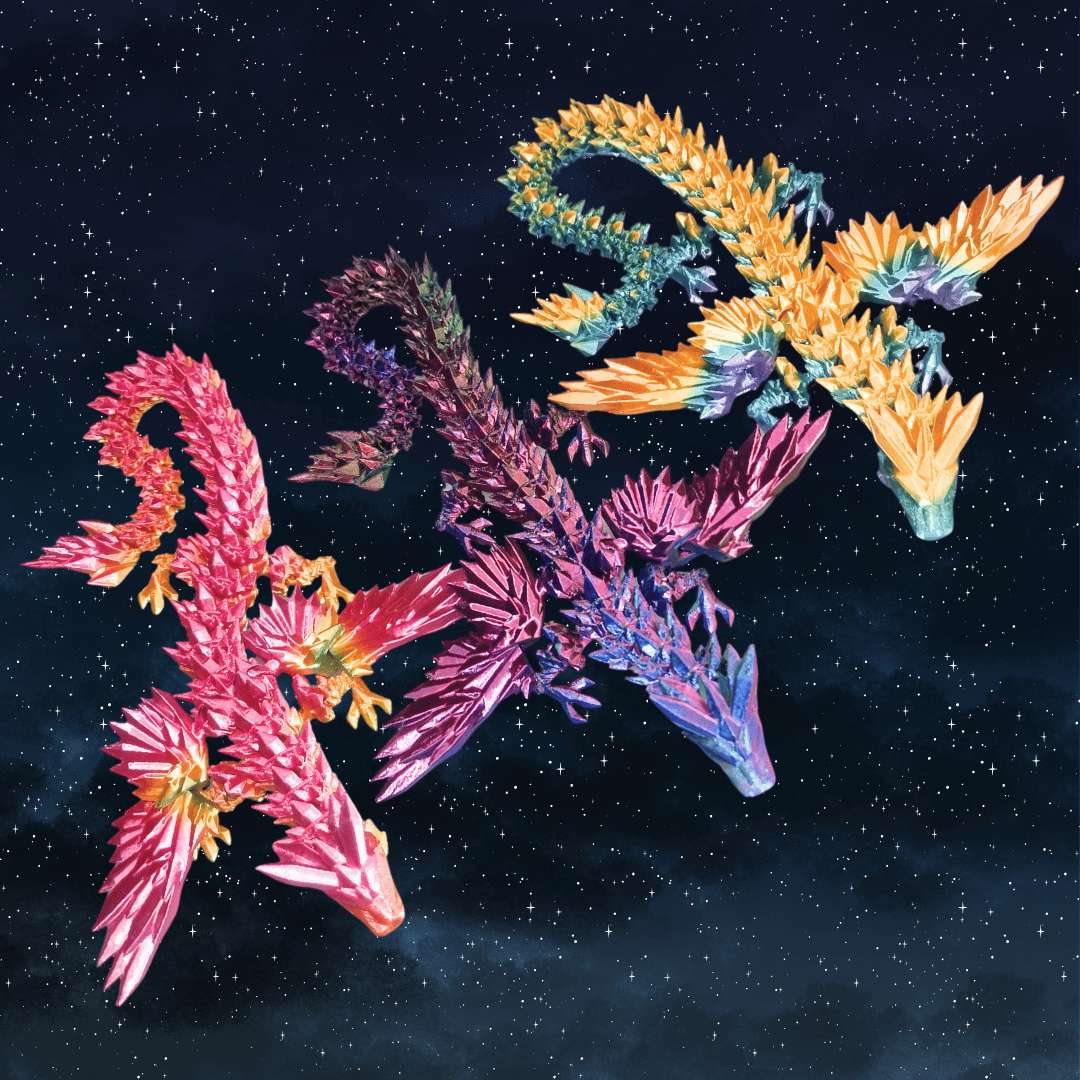 En dragende fidget med vinger, der indbyder til sanselig leg Denne detaljerede og bevægelige drage med vinger er både en fryd for øjet og for hænderne. Dragen er 3D-printet i iriserende farver, som skifter karakter, når lyset rammer den – og dens mange led og bløde bevægelser gør den til en helt særlig sansestimulerende fidget. Vingerne kan bevæge sig, og kroppen slynger sig, når du holder den i hånden. Den er oplagt både som afslappende fidget og som magisk skrivebordsven til børn, teens og voksne med hang til fantasy og ro i kroppen. 🛡️ Fakta: 3D-printet drage i changerende farver Med bevægelige vinger og fleksibel krop Fascinerende at røre ved og se på Måler ca. 38 cm i længden Anbefalet fra ca. 6 år og op