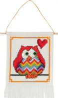 Børnebroderi Ugle, rød 15 x 21cm stof aida Ivory 3,2tråde pr. cm.
