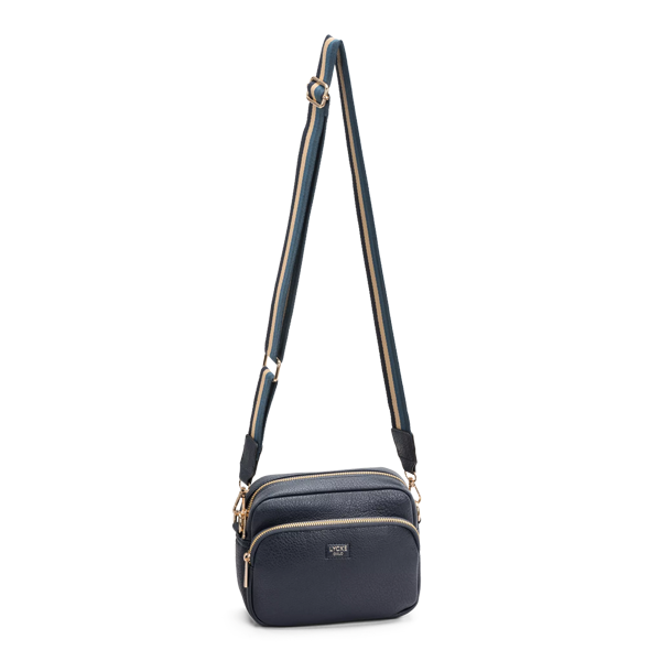 Smart skuldertaske i mørkeblåt kunstlæder fra Lycke Oslo En moderne og praktisk skuldertaske fra Lycke Oslo i den populære kamerataske-model. Tasken er fremstillet i blødt mørkeblåt kunstlæder med en flot struktur, der giver et elegant og afslappet udtryk. Den brede, aftagelige skulderrem i blå og beige tekstil tilføjer et sporty og trendy look. Tasken har to rum med lynlåslukning – et hovedrum og en rummelig frontlomme – begge med smukke gyldne detaljer. Indvendigt finder du en lynlåslomme og et åbent rum til småting, mens bagsiden har en ekstra lomme med lynlås. En alsidig og stilfuld taske, perfekt til både hverdag og fritid. Gør dit outfit komplet med denne elegante Lycke Oslo taske – bestil nu og nyd hurtig levering! Se hele udvalget at Lycke Oslo her. Specifikationer Materiale: Kunstlæder Farve: Mørkeblå Foer: Beige med hjerter Lukning: Lynlås Metaldetaljer: Guld Rem: Aftagelig og justerbar tekstilrem (drop 37–66 cm) Indvendige rum: 1 lynlåslomme, 1 åbent rum Udvendige rum: 1 frontlomme med lynlås, 1 baglomme med lynlås (15 cm) Bredde: 8 cm Højde: 16 cm Længde: 20 cm Mærke: Lycke Oslo Leverandørnummer: 8043705 EAN: 7321051148811