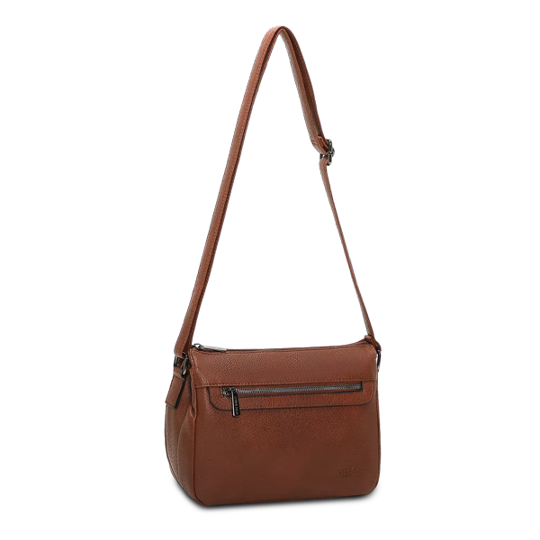 Elegant skuldertaske i brun kunstlæder fra Lycke Oslo En stilfuld og funktionel skuldertaske fra Lycke Oslo, udført i blødt brun kunstlæder med en let totonet effekt, som giver tasken et eksklusivt og moderne look. Den er både praktisk og elegant – perfekt til dig, der ønsker en taske med god plads og flot design. Tasken har tre separate hovedrum med lynlåslukning, så du nemt kan organisere dine ejendele. Indvendigt finder du et midterrum med lynlås, en ekstra lynlåslomme samt to åbne lommer. Derudover har tasken både en frontlomme (19 cm) og en baglomme (17 cm) med lynlås, ideel til mobil, nøgler og andre småting. Den justerbare skulderrem giver fleksibilitet – bær den over skulderen eller som crossbody. En praktisk og elegant hverdagstaske, der kombinerer skandinavisk design med funktionalitet. Bestil din Lycke Oslo skuldertaske i dag! Se hele udvalget af tasker fra Lycke Oslo her. Specifikationer Materiale: Kunstlæder Farve: Brun Foer: Beige med hjerter Lukning: Lynlås Metaldetaljer: Gunmetal Rem: Justerbar (drop 33–70 cm) Indvendige rum: Midterrum med lynlås, 1 lynlåslomme, 2 åbne lommer Udvendige rum: Frontlomme (19 cm) og baglomme (17 cm) med lynlås Bredde: 11 cm Højde: 19 cm Længde: 26 cm Kategori: Skuldertasker / Crossover Serie: Doris Mærke: Lycke Oslo Leverandørnummer: 8053215 EAN: 7321051167508