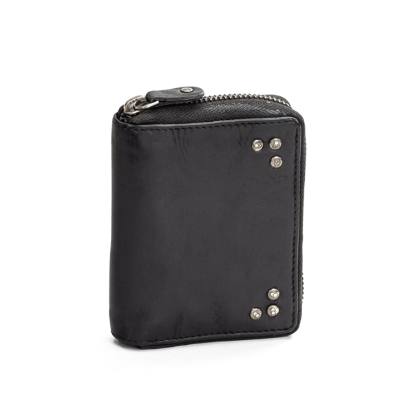 Sort pung i vintage skind med lynlås Denne stilfulde pung i sort skind kombinerer klassisk design med et råt vintage-look. Den er fremstillet i blødt, vasket skind og pyntet med små nitter, som giver et moderne og karakterfuldt udtryk. Indvendigt finder du flere rum til kort, mønter og sedler, og lynlåsen hele vejen rundt sørger for, at alt ligger sikkert. En funktionel og elegant pung, der passer perfekt til både hverdag og fest. Bestil din sorte skindpung hos Hugo P – nem og hurtig levering direkte til døren. Du finder sortimentet fra House of Nordic lige her hos Hugo P. Specifikationer: Mærke: House of Nordic Model: Vintage Rock damepungpung Mål: H11,5 x B2,5 x L9 cm - Kompakt og praktisk Materiale: Kalveskind Farve: Sort Design: Skandinavisk og minimalistisk Hovedrum: Lukkes med lynlås Forlæng pungens levetid med Collonil læderpleje, der beskytter mod pletter og vand, bevarer farve og glans, og holder læderet smidigt. Produkterne er nemme at bruge og perfekte til en travl hverdag. EAN: 7321051168147 Leverandørnummer: 2613036