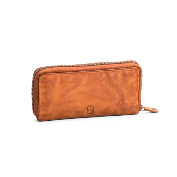 Cognac pung i vintage skind med lynlås Denne eksklusive pung i cognacfarvet skind forener klassisk håndværk med et moderne vintage-look. Den er fremstillet i blødt, vasket skind og har små dekorative nitter, der giver et unikt og tidløst udtryk. Med lynlås hele vejen rundt holdes alt sikkert på plads, og indvendigt finder du god plads til kort, kontanter og mønter. En elegant og funktionel pung, perfekt til både hverdag og rejse. Bestil din cognacfarvede skindpung hos Hugo P – nem og hurtig levering direkte til døren. Du finder sortimentet fra House of Nordic lige her hos Hugo P. Specifikationer: Mærke: House of Nordic Model: Vintage Rock damepung Mål: H19 x B25 x L9,5 cm - Kompakt og praktisk Materiale: Kalveskind Farve: Cognac Design: Skandinavisk og minimalistisk Hovedrum: Lukkes med lynlås Forlæng pungens levetid med Collonil læderpleje, der beskytter mod pletter og vand, bevarer farve og glans, og holder læderet smidigt. Produkterne er nemme at bruge og perfekte til en travl hverdag. EAN: 7321051168208 Leverandørnummer: 2613037