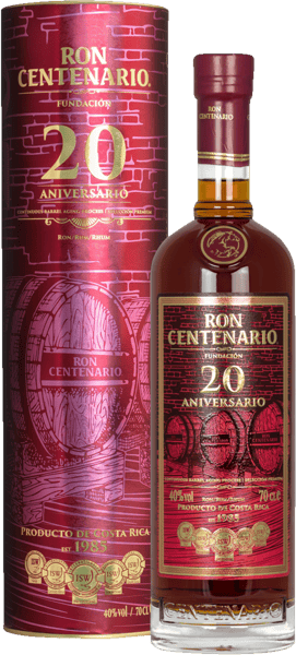 Centenario Rum 20 Fundación 40% 0,7l er en premium rom fra Costa Rica. I lang tid var Costa Rica primært kendt for produktion af kaffe. Men på grund af sin placering mellem Caribien og Atlanterhavet, kan der dyrkes sukkerrør af meget høj kvalitet – eminent til fremstilling af rigtig god rom. Disse rom nyder efterhånden stor respekt blandt kendere, og Centenario Rums har bragt nogle premium-rums på markedet, der er blevet meget populære.Denne Ron Centenario Fundacion XX 20 Anos Reserva Especial har et langt navn, men er derudover lidt i samme, søde stil som den mere kendte Ron Zacapa 23 års. Om end Ron Centenario – i vor optik – er et niveau bedre.Den har en intens ravfarve, og i næsen får du vanilje, bagte bananer og mørke frugter. I munden sødmefuld, med ristede nødder, bananer, chokolade og modne eksotiske frugter. I den lange finish får du karamel, chokolade, men også en stor kompleksitet med en anelse røg og tyngde a’la’ god cognac.Dejlig dram der har vundet adskillige priser og kåringer verden over.