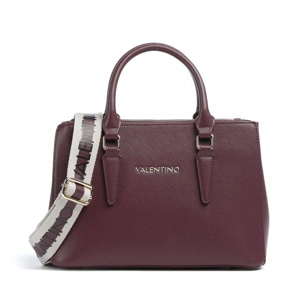 Valentino Zero Re håndtaske i bordeaux Valentino Bags Zero Re håndtaske er en sofistikeret og moderne taske, der forener funktionalitet med et elegant design. Den kommer her i en smuk bordeaux nuance med guldfarvede detaljer, som tilfører et eksklusivt og feminint udtryk. Tasken er fremstillet i kunstlæder af genanvendte “Relove”-materialer – helt uden animalske produkter – og er dermed både stilfuld og bæredygtig. Den har ét stort hovedrum med klap og knaplås, hvor du indvendigt finder en stor lynlåslomme samt to mindre stiklommer til dine småting. Derudover har tasken to store lynlåsrum på hver side af hovedrummet, så du nemt kan organisere dine ejendele. Zero Re håndtasken leveres med to aftagelige og justerbare skulderremme: én i taskens materiale og én bred rem med Valentino-logo, der giver et sporty og moderne look. Tasken kan bæres som håndtaske, skuldertaske eller crossbody – alt efter anledning. Fire små metalfødder i bunden beskytter tasken og sørger for, at den står stabilt. Der medfølger desuden en praktisk støvpose til opbevaring. En smuk og funktionel taske, perfekt til hverdag, arbejde eller shopping. Se hele udvalget af Valentino her. Specifikationer Længde: 30 cm Højde: 20 cm Dybde: 13 cm To solide hanke To justerbare og aftagelige skulderremme Materiale: Kunstlæder (Relove, genanvendt PU) Farve: Bordeaux Mærke: Valentino Bags EAN: 8054942813824 Leverandørnummer: VBS7B302N-295