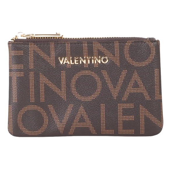 Valentino Regina Re møntpung med kæde i brun Elegant og praktisk møntpung fra Valentino Bags, perfekt til opbevaring af mønter, kort og nøgler. Regina Re pungen er fremstillet i slidstærkt PU-materiale med det ikoniske Valentino-logo printet over hele overfladen, hvilket giver et luksuriøst og genkendeligt udtryk. Pungen åbnes med lynlås og har en indvendig kortlomme, så du nemt kan organisere dine vigtigste ejendele. Den aftagelige guldfarvede kæde med nøglering gør det muligt at bruge pungen som en lille clutch eller fastgøre den i din taske for ekstra sikkerhed. En kompakt og stilren accessory, der kombinerer funktionalitet med klassisk Valentino-elegance – ideel til både hverdag og rejser. Se hele udvalget af Valentino her. Køb Valentino Regina Re møntpung hos Hugo P – med hurtig og nem levering! Specifikationer Længde: 15 cm Højde: 9 cm Bredde: 1 cm Materiale: PU (kunstlæder) Farve: Brun med logoprint Lukning: Lynlås Detaljer: Guldfarvet kæde med nøglering Mærke: Valentino Bags Leverandørnummer: VPS9IS101-N06 EAN: 8054942910271