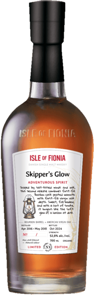 Skippers Glow kombinerer first-fill Bourbon cask peated varme med first-fill virgin-oak dybde. Sød og fyldig med en antydning af røg, dvæler den som det bløde skær fra en horisont i skumringen. Efter en 6 måneders sejlsæson, hvor fadet har været til søs, er whiskyen blevet viet med nogle af vores fineste tørverøgede whiskyer. Resultatet er en vidunderlig dram med intense maritime noter, blid tørverøg, vanilje, frisk frugt, tørret frugt, chokolade og appelsin.