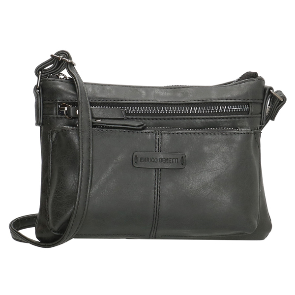 Enrico Benetti Nouméa Skuldertaske – Sort Denne lille, smarte Enrico Benetti Nouméa skuldertaske i klassisk sort er perfekt til dig, der vil have en kompakt taske med masser af praktiske rum. Tasken er lavet af blødt kunstlæder (PU), som giver et elegant og tidløst udtryk, der passer til både hverdag og byture. På fronten finder du to lynlåslommer, som gør det nemt at holde styr på nøgler, telefon eller andre småting. Bagsiden har en ekstra lynlåslomme til sikker opbevaring. Tasken lukkes med lynlås og har indvendigt et hovedrum med en lille lynlåslomme. Den justerbare skulderrem giver fleksibilitet, så tasken kan bæres både crossbody og over skulderen. En lille, stilren og funktionel skuldertaske, der passer til enhver lejlighed. Køb din Enrico Benetti Nouméa skuldertaske i dag – med hurtig levering fra Hugo-p.dk! Se hele udvalget af tasker fra Enrico Benetti her. Specifikationer Mærke: Enrico Benetti Serie: Nouméa Farve: Sort Materiale: Kunstlæder Højde: 16 cm Bredde: 22 cm Dybde: 4 cm Vægt: 0,20 kg Lukning: Lynlås Funktioner: • 2 lynlåslommer på fronten • Lynlåslomme på bagsiden • Indvendig lynlåslomme • Regulerbar skulderrem Produktgruppe: Crossbody / Skuldertaske EAN: 8714872350904 Leverandørnummer: 66416-001