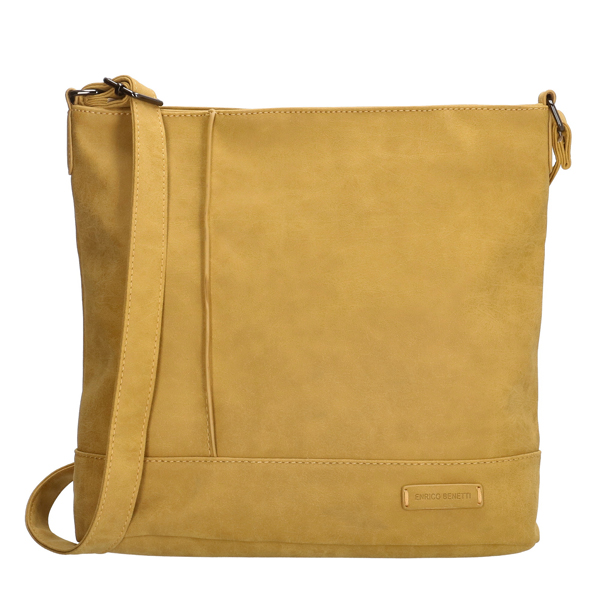 Enrico Benetti June Skuldertaske – Okkergul Den okkergule Enrico Benetti June skuldertaske kombinerer flot design med funktionalitet. Tasken er lavet i blødt kunstlæder med en smuk struktur og en elegant detalje på fronten, som giver et moderne udtryk. Bagsiden har en praktisk lynlåslomme til småting, du vil have lige ved hånden. Indvendigt er tasken opdelt i to sektioner med et midterrum, der lukkes med lynlås, samt en lille indvendig lynlåslomme og to stiklommer. Den justerbare skulderrem gør det muligt at bære tasken både som skulder- og crossbodytaske. En stilfuld og praktisk taske, perfekt til både hverdag og arbejde. Køb din Enrico Benetti skuldertaske i dag – med hurtig levering fra Hugo-p.dk! Se hele udvalget af tasker fra Enrico Benetti her. Specifikationer • Mærke: Enrico Benetti • Serie: June • Farve: Okkergul • Materiale: Kunstlæder (PU) • Mål: 29 x 10 x 27,5 cm • Vægt: 0,40 kg • Rum: Hovedrum opdelt med lynlåslukket midterrum • Lommer: Lynlåslomme på bagside, lille indvendig lynlåslomme, 2 stiklommer • Lukning: Lynlås i toppen • Rem: Justerbar skulderrem • Produktgruppe: Skuldertaske / Crossbody • Leverandørnummer: 66589 • EAN: 8714872368565