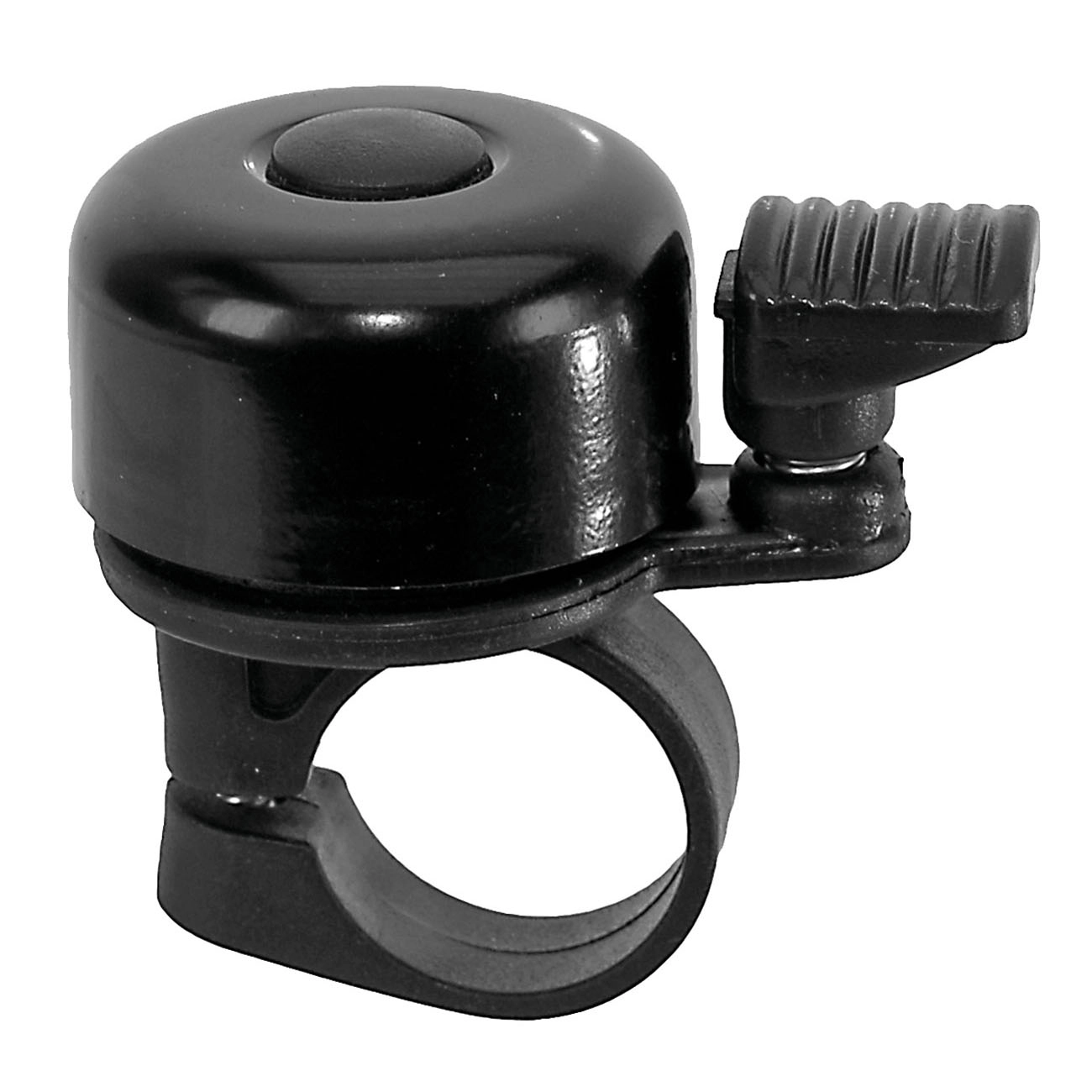 M-Wave Mini Bell ringetone. Manuell ringklokke som er liten og fleksibel på styret, sort topp i aluminium med plastbunn. Spesifikasjoner: Diameter klemme: 35 mm Klem: Rund klemme stjerneskrue