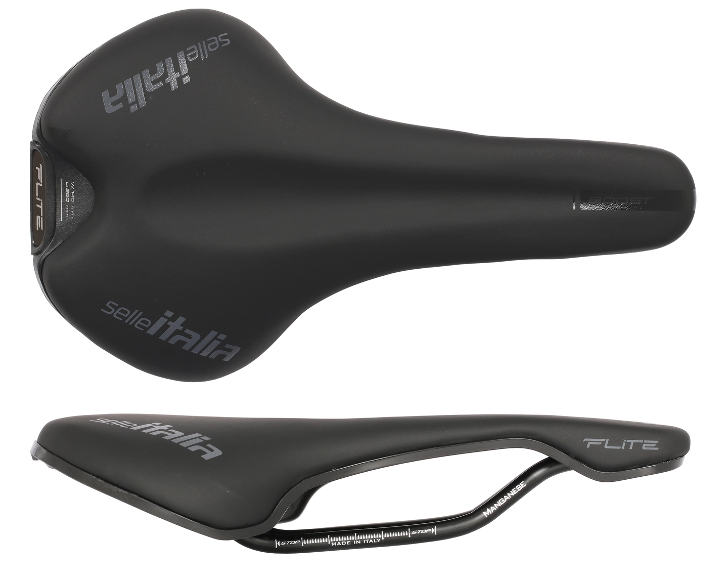 Selle Italia Flite Boost TM Sete Sort, 145x250mm, Mangan, 258g
