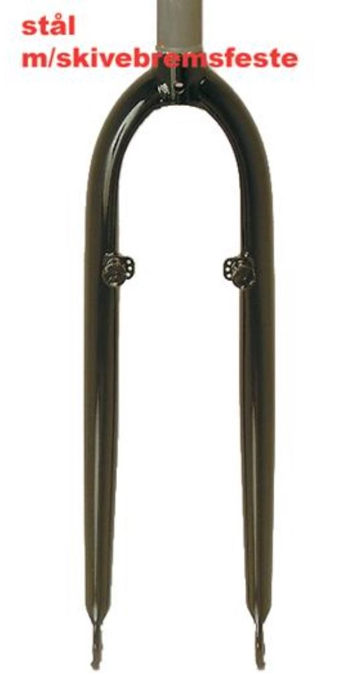 Stålgaffel for hybridsykler, med stål kronerør og fester for lowrider bagasjebrett. Kan gjenges etter ønske. Aksling til krone avstand 42,5cm Spesifikasjoner: Materiale: Stål Avstand aksling/krone: 42,5 cm Type: Stiv gaffel, 28" Styrelager: 1 1/8" Aksling: 5x100 mm Vekt: 1337 gram