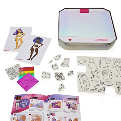 BeskrivningCreate your own stylish looks with the inkFLUENCER Style N Create Light Desk. Partnering with TikTok influencers We Wear Cute, inkFLUENCER brings you fun, trendy, social media-inspired DIY art supplies. The Style N Create Light Desk comes with everything you need to create and customize your own influencer-inspired looks. First, choose one of eight models to style and select the clothing you want from the sticker sheets: skirts, jackets, pants, tops, accessories and more! Carefully cut out your outfit and remove the sticker backings. Apply the clothing stickers onto your model and peel to reveal a sticky area left on the surface. Next, embellish and style your outfits with the metallic transfer patterns. With eight stylish patterns, set one on top of the clothing and firmly rub to make the pattern stick. Finally, peel the transfer off to reveal the filled-in area! The Style N Create Light Desk’s unique transfer system makes it so easy to design inside the lines for flawless fashions; the metallic transfers only adhere to the sticky parts from the clothing stickers. You can also give your looks design accents by layering patterns on top of each other! When you’re finished designing, slide your completed model under one of the included filters and make it shine. Turn on the desk’s light and share your super cute look with friends. You can also use the Style N Create Light Desk to trace your own custom looks with the model and clothing tracing set all you need is some blank paper and a pencil. For easy storage, everything fits inside the cool, crafty reusable premium case. For even more ways to create, look for the inkFLUENCER Click N Color Marker Set (sold separately). Mix and match to design your stylish looks with the inkFLUENCER Style N Create Light Desk.Specifikationer:Färg:MultiVikt:9,4 KG