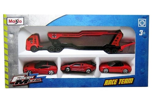 MAISTO Fresh Metal gaveæske med en autotransporter og tre sportsvogne