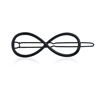 Kaya infinity – hårspænde sort. Sort 8 tals hårspænde i et smukt og minimalistisk design, som fungerer perfekt til simple håropsætninger.\nHårspændet giver fuld kontrol over håret, så det holdes på plads hele dagen igennem. Spændet giver opsætningen et moderne og feminint udtryk i håret.\nHårspændet lukkes med en tryklukning for at sikre, at det sidder, som det skal.\n\n- Sort\n- Metal\n- 7 cm Lang Bredde 2 cm Ø