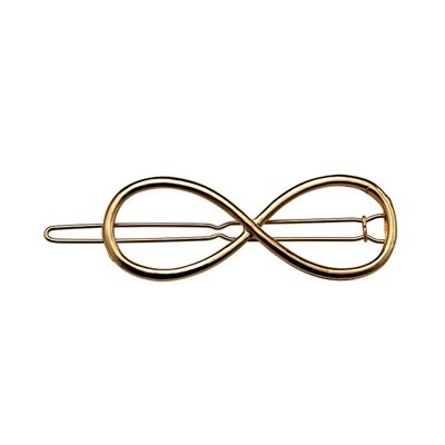 Kaya infinity – hårspænde guld. Guld 8 tals hårspænde i et smukt og minimalistisk design, som fungerer perfekt til simple håropsætninger.\nHårspændet giver fuld kontrol over håret, så det holdes på plads hele dagen igennem. Spændet giver opsætningen et moderne og feminint udtryk i håret.\nHårspændet lukkes med en tryklukning for at sikre, at det sidder, som det skal.\n\n- Guld\n- Metal\n- 7 cm Lang Bredde 2 cm Ø
