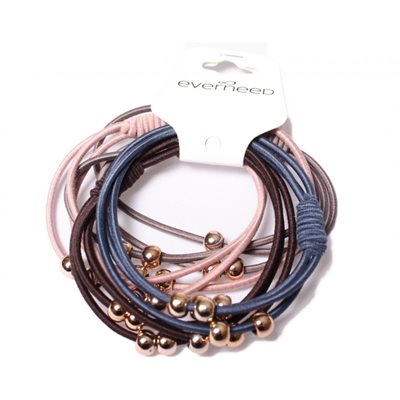 Miaisabell – kugleelastikker lys. Hårelastikker i flere lyse farver med guld kugler som pynt.\nRigtig gode hårelastikker, der bliver siddende i håret, og som er en flot detalje til din håropsætning. Kan også bruges som et sødt lille armbånd.\n\n- Farve - Lyse farver\n- Materiale - 60% elastan, 40% polyester