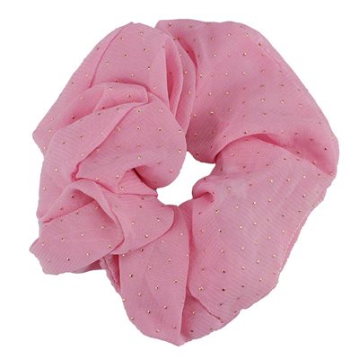 Scrunchie – rosa guld dots. Hårelastikken sidder godt i håret og pynter flot om din hestehale, fletning eller knold. – Super flot hårpynt både til hverdag og fest. Det er også meget sødt omkring håndleddet.