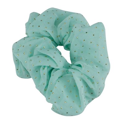 Scrunchie – mint guld dots. Hårelastikken sidder godt i håret og pynter flot om din hestehale, fletning eller knold. – Super flot hårpynt både til hverdag og fest. Det er også meget sødt omkring håndleddet.