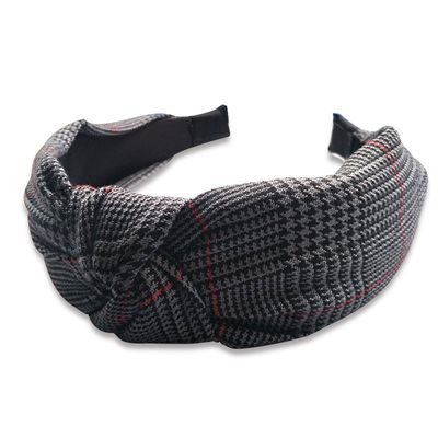 Bine – ternet hårbøjle grey. Ternet grå hårbøjle med knude på toppen.\nHårbøjlen giver flere forskellige stylingsmuligheder, og holder håret væk fra øjnene. Den tilføjer dig en moderne håropsætning, der holder hele dagen.\nEverneed hårbøjler strammer ikke bag ørerne, og ønsker du dem yderligere udvidet, kan de forsigtigt strækkes vandret, så den udvider sig.\nHårbøjlen er beklædt med et lækkert materiale, der giver hårbøjlen et elegant og moderne udtryk.\n\n- Farve - Grå, Sort, Ternet\n- Materiale - Polyester\n- Størrelse - 13cm Ø