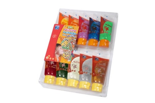 Gennemsigtig maling med glitter i.Tørre klar op.Pensler og værktøj rengøres i vand.