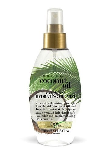 BeskrivningLjuvligt fuktgivande leave-in spray som lämnar håret mjukt och väldoftande. Den ultralätta sprayen tynger inte ner håret och ger en glänsande look. Ogx Coconut Hydrating Oil Mist är berikad med kokosnötsolja och bambuextrakt för djupgående vård. Kan användas av alla hårtyper, men är särskilt lämplig för tråkigt hår som saknar glans.Innehåll118 ml