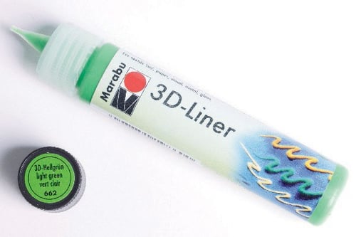 Vandbaseret liner til dekoration.Liner kan bruges til at lave puff og relief effekt.Effekten opnås når lineren fikseres. Efter fiksering kan de dekorerede vaskes op til 40 grader.Velegnet til strømper, tekstil, glas, sten, træ m.v.