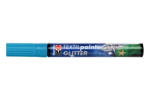 Glitter tusch til lys og mørke tekstiler. Vandbaseret.Skal stygefikseres, tåler vaskes ved 30 grader. efter fiksering.