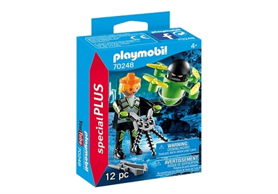 I veckor har agenten donat med sin senaste uppfinning, en specialdrönare. Äntligen är den klar. Han startar drönaren och sätter sig i rörelse. Nu bär det av på upptäcktsfärd. PLAYMOBIL-Special Plus ger ett plus i lekglädje till ett lågt pris. Perfekt som liten present, att samla på, byta och skänka bort.