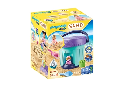 Leka i sanden och låta fantasin vandra, det är extra kul för småbarn. Med kreativsetet "sandbageriet" kan små sandbyggmästare baka unika kakor och dekorera dem med olika stämplar. Alltid annorlunda alltid nytt! PLAYMOBIL-skoj i sandlådan! Kreativsetet innehåller en hink, en sil, en degsked och en tårtspade, samt två sandformar och en PLAYMOBIL-1.2.3-figur. Med två sandstämplar får bakverken en personlig touch.