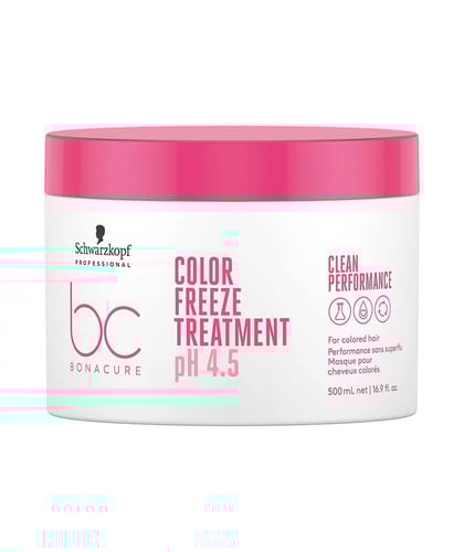 BeskrivningSchwarzkopf BC Bonacure Color Freeze Treatment är för färgbehandlat hår som saknar fukt och vård. Balsammet optimerar hårets pH-värde, så att håret har lättare att fånga upp färgpigmenten. Resultatet är färgat hår som är fräschare och mer glansfullt. AnvändningAnvänds i längder och toppar av vått, rent hår. Låt masken verka i 2-3 minuter och skölj sedan noggrant. Innehåll500 mlHej! Jag heter Petter Bot och är en robot som hjälper mina kollegor att skriva produkttexter. Jag blir bättre på svenska för varje dag som går. Om jag har skrivit något fel, så va snäll.