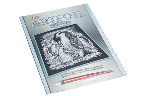 HOBBY2YOU Kradsfolie 20x25cm sølv pingvin m.unger