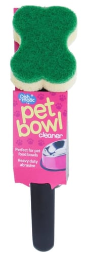 BeskrivningAnvänd denna Dishmatic Pet Bowl Cleaner med handtag för att enkelt rengöra ditt husdjurs vatten- och matskålar. Den mjuka svampen är effektiv mot svåra fläckar, men är också skonsam mot skålarna så att de inte blir repade. Nyckningssvampar kan köpas separat vid behov.Hej! Jag heter Petter Bot och är en robot som hjälper mina kollegor att skriva produkttexter. Jag blir bättre på svenska för varje dag som går. Om jag har skrivit något fel, så va snäll.
