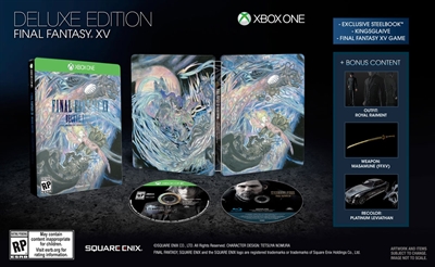BeskrivningDeluxe Edition innehåller:Final Fantasy XV game discExclusive Steelbook coverKingsglaive Blu-Ray movieBonus DLC Royal Raiment outfit, Masamune weapon and Platinum Leviathan recolor.De väpnade styrkorna i Nifelheim startar ett förödande angrepp på Konungariket Lucis och kronprinsen Noctis och hans kamrater kastas ut ur sina hem och in i striden. Den engagerande berättelsen drar dig in i en imponerande värld genomsyrad av de rika berättartraditionerna från Square Enix.Final Fantasy XV introducerar ett nytt system som låter spelaren interagera med omgivningen och avgöra hur de tacklar de strider som kan komma. Spelet ger dig stor frihet och möjligthet att interagera med omgivningen där man kan förstöra objekt och olika vägar kan användas för att nå slutmålet. Världskartan är ett öppet område som du kan utforska till fots, olika fordon eller varför inte rida på en Chocobo. Ett natt- och dagsystem påverkar utseendet på vissa möten på världskartan. Final Fantasy XV kommer att innehålla interaktiva mellansekvenser i form av realtidshändelser där du kan styra flödet under scenerna och avgöra vilken väg berättelsen tar. Spelet innehåller även för-renderade filmscener, precis som tidigare spel i serien.Specifikationer:Vikt:2,15 KGPEGI / Rec. Användnings ålder:16Konsoltyp:XBOX ONE