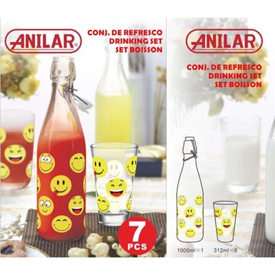 Smiley Bottle 1L och 6 glas