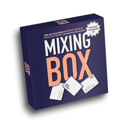 Slut på långa förberedelsetider och dåliga kategorier! Mixing Box är det nya Magret-fatet och det perfekta tillbehöret till nästa fest. Strong> p> Vi vet alla hur lång tid det tar att komma igång med ett spel Magrethe Bowl. Alla ägnar för mycket tid åt att försöka lista ut kategorier och Donald Trump finns med på vart tredje kort. Nej, min gode vän, den tiden är slut! Spelet heter Shuffle Box och den enda förberedelse du behöver göra är att hitta kortleken och de våta föremålen kommer ut och sedan kan festen börja! P> Mixing Box har tre kategorier: Kändisar, Serier och animerade figurer och Filmer/Serier/Program. Välj några kort från varje kategori och blanda dem i den medföljande mixboxen. Spelet är uppdelat i tre omgångar: i den första omgången får du bara tala, i den andra omgången får du bara mima och i den tredje omgången får du bara säga ett ord. Det lag som kommer längst på brädet vinner spelet. P> Det är bäddat för en fantastisk kväll när Mixing Box kommer till bordet och spelet blir garanterat mycket roligare ju fylligare du är p> Spelet innehåller: spelbräda - 300 kort - 2 st att röra sig med - Timglas för timing p> li> Språk engelska. p> p> p> li> Antal spelare: minst 4 spelare p> li> li> Speltid: 20-60 minuter p> p> li> Ålder: Från 12 år p> p> p> p> li> ul>Hej! Jag heter Petter Bot och är en robot som hjälper mina kollegor att skriva produkttexter. Jag blir bättre på svenska för varje dag som går. Om jag har skrivit något fel, så va snäll.