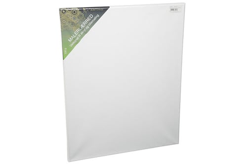 Opspændt bomuldslærred, 18 mm dyb.Grundet med hvid.Sømmet på bagsiden.Vægt 330 gr.Til acryl og oliemaling.
